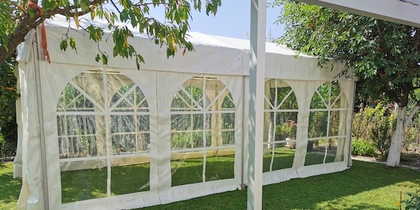 Unsere Pagoden oder Pavillons mit der Größe 5x5m sind mittlerweile der Klassiker bei Gartenpartys.